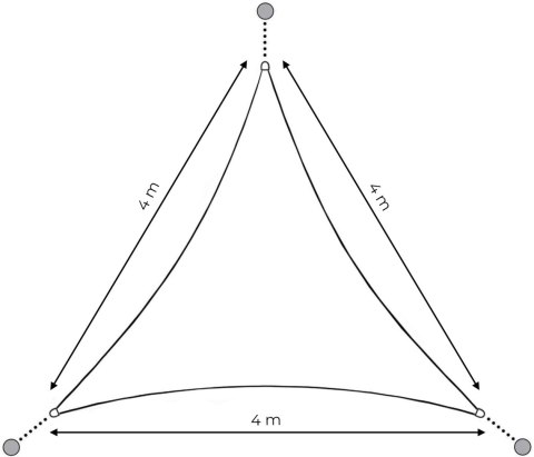 Przy montażupamiętaj o delikatnym nachyleniu (około 20°) całego żagla aby wspomagać działanie hydrofobowe materiału. Podczas opadów, woda będzie swobodnie spływać z daszku.